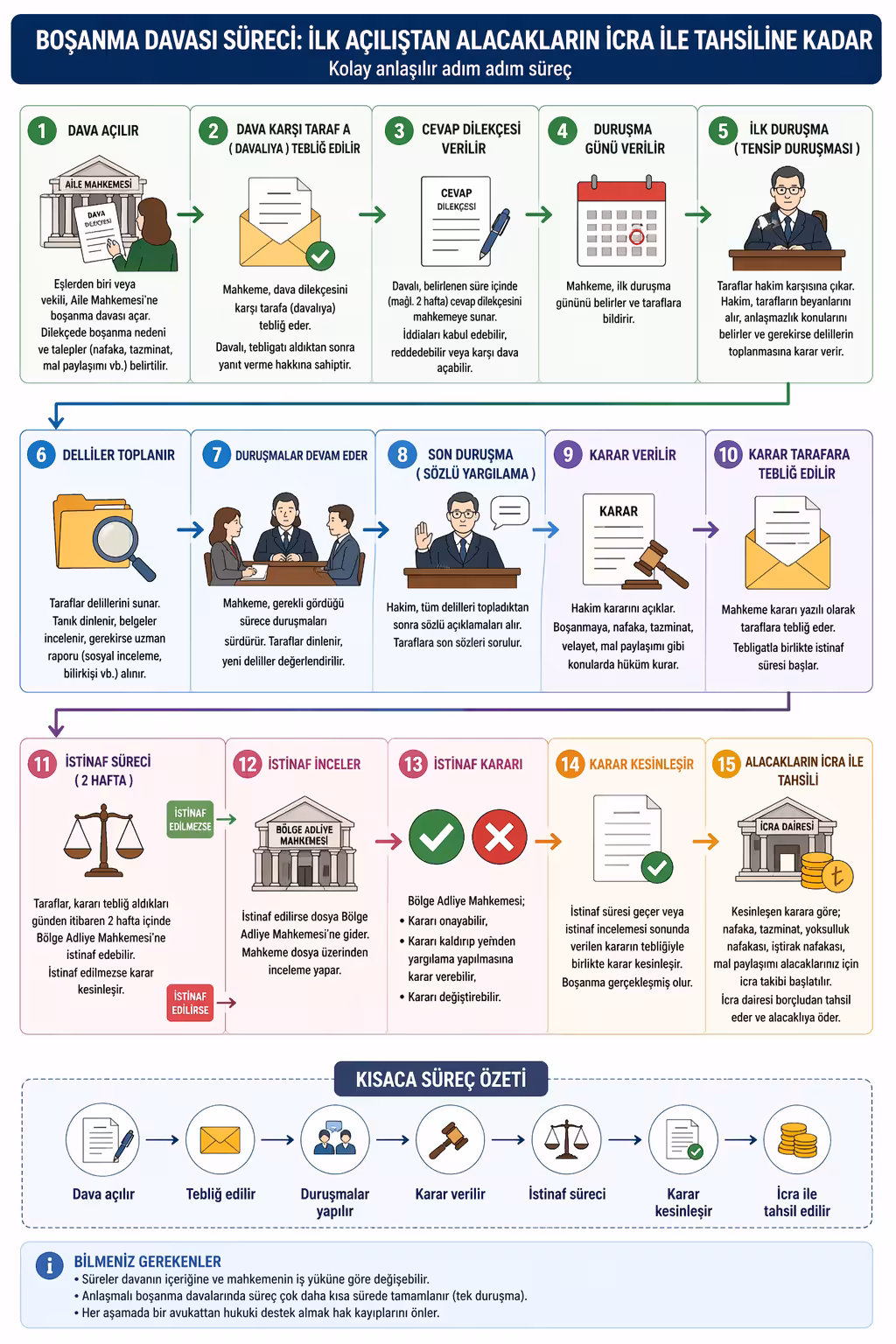 Pratik olarak, sürecin hızlanması için tarafların avukatları aracılığıyla istinaf hakkından feragat dilekçesi sunması yaygın bir uygulamadır. Bu adımdan sonra, kararın Nüfus Müdürlüğü’ne bildirilip bildirilmediğini teyit etmek, olası gecikmelerin önüne geçmek adına önemlidir.